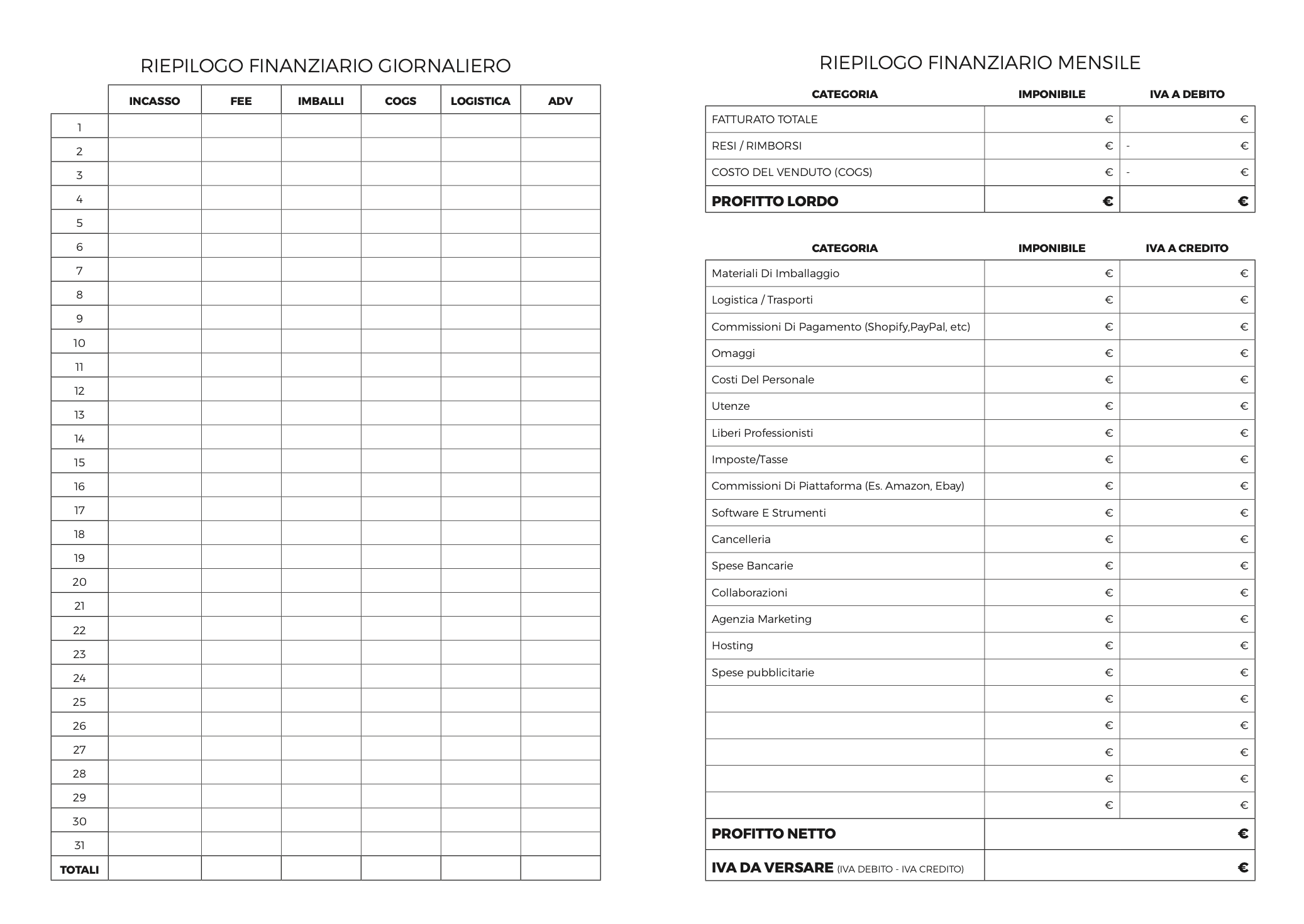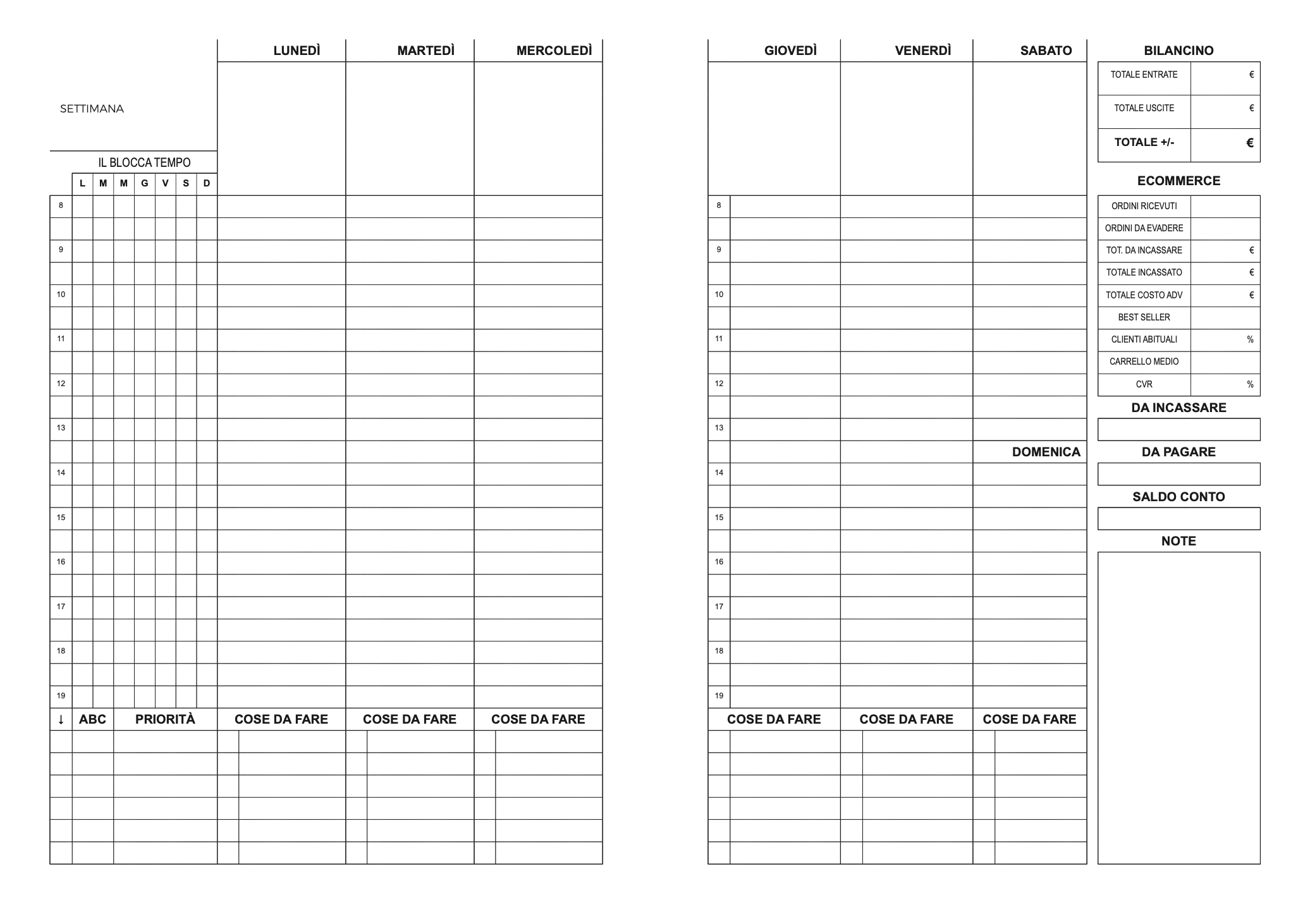 THE ECOM PLANNER non è una semplice agenda. È uno strumento operativo pensato per chi vende online, realizzato con un layout minimal e funzionale per aiutarti a: