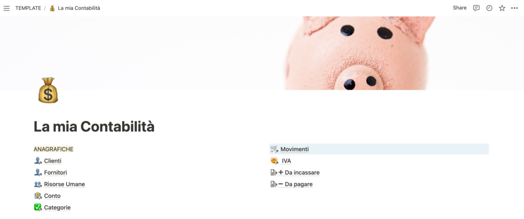 Il template su Notion sulla contabilità è adatto per piccole imprese o liberi professionisti che hanno l’esigenza di tenere sotto controllo le proprie finanze e la situazione economica della propria attività.